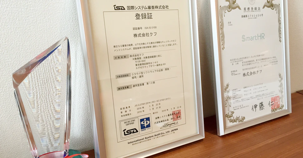 SmartHRを運営する株式会社KUFUは、情報セキュリティマネジメントシステム(ISMS)の国際規格である「JIS Q 27001 : 2014( ISO / IEC 2700 : 2013)」の認証取得いたしました。