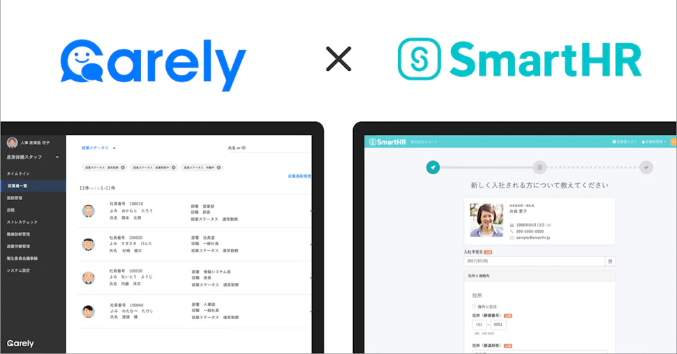 「SmartHR」と従業員の健康管理クラウドサービス「Carely」がAPI連携。 人事労務の業務効率化から働き方改革を推進