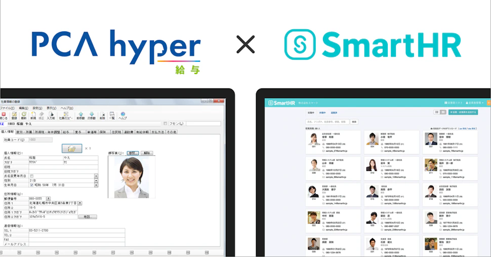 クラウド人事労務ソフト「SmartHR」とクラウド給与システム「PCA給与hyper」は、2019年内に「従業員情報」と「給与明細情報」のAPI連携機能を提供開始することをお知らせいたします。